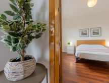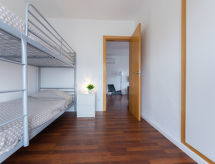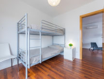 3 -sobni apartman 55 m2 na 4. katu. Komforno i ukusno uređen: dnevni boravak/blagovaona s digitalnim TV, klima uređajem i grijanjem na topli zrak. 1 soba s 1 bračnim krevetom (135 cm). 1 soba s 1 x 2 kreveta na kat. Kuhinja (4 ploče za kuhanje, mikrovalna pećnica). Tuš/WC. Mali balkon. Djelomičan pogled na more. Na raspolaganju: perilica za rublje. Internet (wireless LAN [WLAN], besplatan). HUTT005514- postrojenja