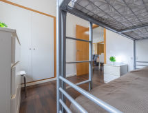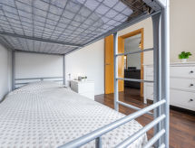 4 -sobni apartman 55 m2 na 1. katu. Moderno i ukusno uređen: dnevni boravak/blagovaona s digitalnim TV, plosnatim TV ekranom, klima uređajem i grijanjem na topli zrak. Izlaz na balkon. 1 soba s 1 franc. krevetom. 2 sobe, svaka soba s 1 x 2 kreveta na kat. Kuhinja (4 ploče za kuhanje, X, mikrovalna pećnica, el. aparat za kavu). Tuš/WC. Balkon. Balkonski namještaj. Djelomičan pogled na more. Na raspolaganju: perilica za rublje, glačalo, sušilo za kosu. Internet (wireless LAN [WLAN], besplatan). HUTT005455- postrojenja