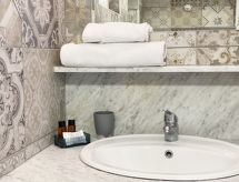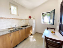 1 -sobni apartman 30 m2, u prizemlju. Jednostavno i svrsishodno uređen: 1 soba s 1 krevetom, 1 bračnim krevetom i klima uređajem. Izlaz na terasu. Mala kuhinja (2 ploče za kuhanje, kuhalo za vodu) s stolom za blagovanje. Tuš/bidet/WC. Bojlerom (50 litara). Na raspolaganju: sef (uz doplatu), dječji krevetić do 2 godine (uz doplatu), sušilo za kosu. Internet (wireless LAN [WLAN], besplatan). Parking (uz doplatu, 1 automobil). Dodatna informacija: hladnjak bez zamrzivača kuća za nepušače. Najviše 1 kućni ljubimac / pas dozvoljen. CIR:19083097A600090- Značajke smještaja