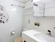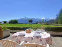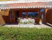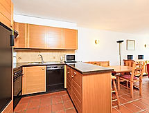 1 -sobni studio 53 m2 na 1. katu. Objekt pogodan za 2 odraslih + 1 dijete. Dnevni boravak/blagovaona s kliznim vratima s 1 kaučem za 1 osobu (120 cm, dužina 180 cm), kabelskom TV. Niša za spavanje s kliznim vratima s 1 bračnim krevetom (2 x 90 cm, dužina 187 cm). (pećnica, perilica za suđe, 3 staklokeramičke ploče za kuhanje, toster, kuhalo za vodu, mikrovalna pećnica, el. aparat za kavu, set za fondue (sir)). Kada/WC, odv. WC. Terasa 17 m2, prema jugu. Garnitura za sjedenje. Lijep pogled na planine. Na raspolaganju: sušilo za kosu. Internet (wireless LAN [WLAN], besplatan). Garaža br. 7 (2 automobili), visina 200 cm, širina 230 cm. Dodatna informacija: apartman za nepušače. Najviše 1 kućni ljubimac / pas dozvoljen.- postrojenja