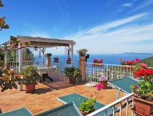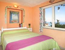 6 -sobna kuća 86 m2 na 2 etaže. Jednostavno uređena: dnevni boravak/blagovaona s 1 kaučem za 2 osobe, stolom za blagovanje, TV-om sa sat. prijemnikom, međunarodnim TV kanalima i peći na drva. 1 soba s 1 franc. krevetom (140 cm), tušem/bidetom/WC-om. Otvorena kuhinja (mini pećnica, 4 plamena za kuhanje, kuhalo za vodu). Gornji kat: (vanjske stepenice) dnevni boravak/blagovaona s kliznim vratima, panoramskim prozorom s otvorenim kaminom, stolom za blagovanje, TV-om sa sat. prijemnikom i međunarodnim TV kanalima. Izlaz na terasu. 1 otvorena soba s 1 x 2 kreveta na kat. 1 soba s 1 franc. krevetom (140 cm). 1 soba s 1 franc. krevetom (170 cm). Otvorena kuhinja (pećnica, 4 plamena za kuhanje, kuhalo za vodu, mikrovalna pećnica, el. aparat za kavu). Tuš/WC. Grijanje na plin. 2 velike terase 35 m2, sjenica. Garnitura za sjedenje, ležaljke. Prekrasan pogled na more. Na raspolaganju: perilica za rublje, glačalo, mrežice protiv komaraca, visoka dječja stolica. Internet (wireless LAN [WLAN], besplatan). Dodatna informacija: apartman za nepušače. Najviše 1 kućni ljubimac / pas dozvoljen. Zasebne stambene jedinice nisu interno povezane.- postrojenja