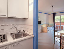 2 -sobni apartman 38 m2 na 1. katu. Svrsishodno uređen: dnevno-spavaća soba s 1 kaučem za 2 osobe, 1 krevetom na izvlačenje, stolom za blagovanje i TV-om. 1 soba s 1 bračnim krevetom. Kuhinjska niša (4 plamena za kuhanje). Tuš/WC. Bez grijanja. Balkon. Balkonski namještaj. Na raspolaganju: sef, dječji krevetić do 2 godine (uz doplatu). Parking. Dodatna informacija: apartman za nepušače.- postrojenja