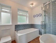 Lijepa, ugodna, komforna obiteljska kuća "The Albatross". U centru mjesta Woolacombe, 300 m od mora, 200 m od plaže. Za samostalno korištenje: vrt - travnjak. Mjesto za sjedenje, terasa, vrtna garnitura za sjedenje, roštilj. Parking (za 3 automobila) uz kuću. Trgovina 700 m, bar 500 m, pješčana plaža 350 m. Golf teren (18 rupa) 2.5 km. U blizini: Chambercombe Manor 12 km, Watermouth Castle 14 km, Arlington Court, Carriage Museum 20 km. Dodatna informacija: preporučljiv vlastiti prijevoz.Interior
