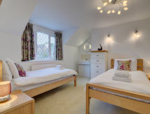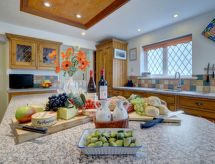 4 -sobna obiteljska kuća na 2 etaže. Prostrano i svijetlo, komforno i ukusno uređena: otvoreni dnevni boravak s TV-om, plosnatim TV ekranom i DVD-om. 1 bračna soba s 1 bračnim krevetom. Otvorena kuhinja (4 ploče za kuhanje, pećnica, mikrovalna pećnica, zamrzivač) s stolom za blagovanje. Kada/tuš/WC. Grijanje. Gornji kat: 1 bračna soba s 1 bračnim krevetom, kadom/tušem/WC-om i TV-om (plosnatim TV ekranom), DVD-om. 1 soba s 3 kreveta i TV-om (plosnatim TV ekranom), DVD-om. Grijanje. Garnitura za sjedenje, vrtni roštilj. Lijep pogled na vrt. Na raspolaganju: perilica za rublje, sušilica. Internet (wireless LAN [WLAN], besplatan). Dodatna informacija: kuća za nepušače.- Značajke smještaja