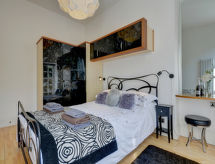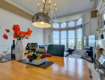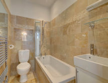 2 -sobni apartman na 1. katu. Prostrano i svijetlo, komforno i ukusno uređen: otvoreni dnevni boravak s TV-om, plosnatim TV ekranom i DVD-om. 1 bračna soba s 1 bračnim krevetom i TV-om (plosnatim TV ekranom). Otvorena kuhinja (4 ploče za kuhanje, pećnica, mikrovalna pećnica, zamrzivač) s stolom za blagovanje. Kada/tuš/WC. Grijanje. Garnitura za sjedenje. Lijep pogled na more. Na raspolaganju: perilica za rublje, sušilica. Internet (wireless LAN [WLAN], besplatan). Dodatna informacija: kuća za nepušače.- Značajke smještaja