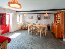 2 -sobni bungalov u prizemlju. Objekt pogodan za 2 odraslih + 1 dijete. Komforno i rustikalno uređen: dnevni boravak/blagovaona s otvorenim kaminom. Kabina s 1 krevetom. 1 soba s 1 bračnim krevetom i otvorenim kaminom. Kuhinja (4 ploče za kuhanje, pećnica). Izlaz u vrt. Kada/WC. Grijanje. Na raspolaganju: perilica za rublje, sušilo za kosu.- postrojenja