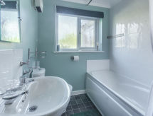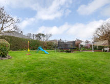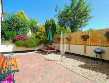 3 -sobna obiteljska kuća. Prostrano i svijetlo, komforno i ukusno uređena: otvoreni dnevni boravak s TV-om, plosnatim TV ekranom i DVD-om. 1 bračna soba s 1 bračnim krevetom. 1 soba s 2 kreveta. Otvorena kuhinja (4 ploče za kuhanje, pećnica, perilica za suđe, mikrovalna pećnica, zamrzivač) s stolom za blagovanje. Kada/tuš/WC. Grijanje. Lijep pogled na vrt. Na raspolaganju: perilica za rublje, sušilica. Internet (wireless LAN [WLAN], besplatan). Dodatna informacija: kuća za nepušače. 1 kućni ljubimac / pas dozvoljen.- Značajke smještaja