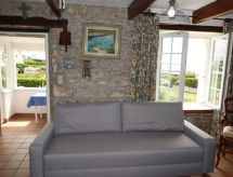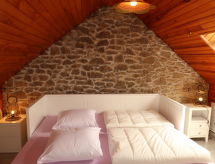 "Ti An Tevenn", 5 -sobna kuća 130 m2. Rustikalno i ukusno uređena: dnevni boravak s švedskom peći, stolom za blagovanje, TV-om sa sat. prijemnikom i radiom. Izlaz u vrt. 1 soba s 1 franc. krevetom (160 cm). 1 soba s 1 franc. krevetom (140 cm). Kuhinja (pećnica, perilica za suđe, 4 Indukcione ploče, mikrovalna pećnica, el. aparat za kavu) s kutom za blagovanje. Izlaz na terasu. Tuš, odv. WC. Gornji kat: 1 soba s 2 kreveta (90 cm). 1 soba s 1 krevetom na izvlačenje (2 x 90 cm). Tuš/WC. El. grijanje. Parketni pod. Terasa, prema jugu. Garnitura za sjedenje, vrtni roštilj (prijenosni), ležaljke (4), ostava. Pogled na more. Na raspolaganju: perilica za rublje, glačalo, dječji krevetić. Internet (wireless LAN [WLAN], besplatan). Dodatna informacija: kuća za nepušače. Najviše 1 kućni ljubimac / pas dozvoljen.- postrojenja
