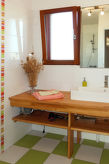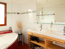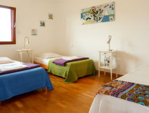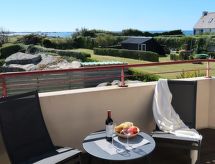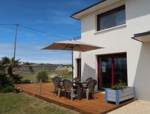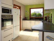 "Ti Koantig (KER216)", 4 -sobna kuća 120 m2 na 2 etaže. Lijepo i udobno uređena: dnevni boravak/blagovaona s stolom za blagovanje, TV-om sa sat. prijemnikom, muzičkom linijom, DVD-om i peći na drva. Izlaz na terasu. 1 soba s 2 kreveta (90 cm, dužina 190 cm). Otvorena kuhinja (pećnica, perilica za suđe, 4 plamena za kuhanje, toster, kuhalo za vodu, mikrovalna pećnica, zamrzivač, el. aparat za kavu). Izlaz na terasu. Tuš, odv. WC. Podno grijanje. Gornji kat: otvorena galerija. Izlaz na balkon. 1 soba s 2 kreveta (90 cm, dužina 190 cm). 1 soba s 1 franc. krevetom (160 cm, dužina 200 cm). Kada, odv. WC, duplim umivaonikom. El. grijanje. Parketni pod. Balkon, terasa. Garnitura za sjedenje, vrtni roštilj (prijenosni), ležaljke (2), ostava. Lijep pogled na vrt i more. Na raspolaganju: perilica za rublje, sušilica, glačalo, visoka dječja stolica, dječji krevetić. Internet (wireless LAN [WLAN], besplatan). Dodatna informacija: kuća za nepušače. Protupožarni alarm.- Značajke smještaja
