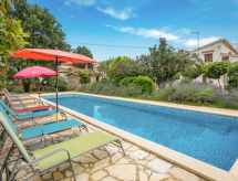 Kuća s više apartmana "Tireli". 5 km od centra mjesta Poreč, 5 km od mora. Za zajedničko korištenje: parcela 3'600 m2 - travnjak i drveće, bazen (14 x 3 m, 46 m2, 130 cm dubok, sezonska dostupnost: 01.May. - 01.Oct.). Vanjski tuš, roštilj. Bazen održava vlasnik/vrtlar. U kući: pristup internetu. Parking na parceli. Supermarket 3 km, restoran 100 m, stjenovita plaža 5 km. Dodatna informacija: vlasnik živi na istoj parceli.Interior