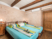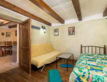4 -sobna kuća 65 m2. Prolazna soba s 2 kreveta. 1 soba s 2 kreveta i klima uređajem. 1 soba s 1 krevetom, 1 kaučem za 1 osobu i klima uređajem. Kuhinja/dn. boravak (4 ploče za kuhanje, pećnica, toster, kuhalo za vodu, zamrzivač, el. aparat za kavu) s stolom za blagovanje i TV-om sa sat. prijemnikom. Izlaz na terasu. Tuš/WC. Grijanje, klima uređaj. Terasa 18 m2 (natkrita). Garnitura za sjedenje, ležaljke. Na raspolaganju: mrežice protiv komaraca. Internet (wireless LAN [WLAN], besplatan). Najviše 3 kućna ljubimca / psa dozvoljena.- postrojenja
