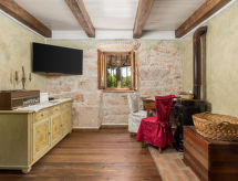 Obiteljska kuća "Tomiceva (SNJ228)". 22 km od centra mjesta Senj, 4 km od centra mjesta Donja Klada, 14 km od centra mjesta Sv. Juraj, izolirano mjesto, 3.5 km od mora, 4 km od plaže. Za samostalno korištenje: parcela 2'000 m2 (ograđena) - travnjak i bilje. Vanjski tuš, hidromasažni bazen, roštilj. U kući: pristup internetu, perilica za rublje. Prilaz autom do kuće (80 m bijela cesta). Parking (za 4 automobila) na parceli. Trgovina 14 km, šljunčana plaža 4 km. Vlasnik ne prihvaća grupe mladih.Interior