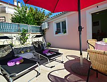 1 -sobni apartman 25 m2, u prizemlju, prema jugozapadu. 1 soba s 1 bračnim krevetom (2 x 80 cm, dužina 200 cm), klima uređajem. Blagovaona s TV-om sa sat. prijemnikom (plosnatim TV ekranom). Izlaz na terasu. Otvorena kuhinja (4 ploče za kuhanje, pećnica, zamrzivač, el. aparat za kavu). Tuš/WC. Klima uređaj (uz doplatu). Terasa 32 m2. Garnitura za sjedenje. Na raspolaganju: Internet (wireless LAN [WLAN], besplatan). 2 mala kućna ljubimca / psa dozvoljena.- postrojenja