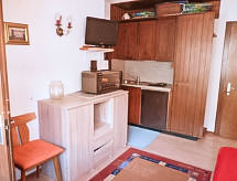 "Tourbillon A 27", 2 -sobni apartman 25 m2 na 2. katu, prema sjeveru. Svrsishodno uređen: mali dnevni boravak/blagovaona s 1 kaučem za 1 osobu, kabelskom TV, plosnatim TV ekranom i radiom. Izlaz na balkon. 1 soba s 2 kreveta (80 cm). Kuhinjska niša (2 ploče za kuhanje, mini pećnica). Tuš/WC. Balkon 10 m2. Lijep pogled na planine i šumu. Parking. Dodatna informacija: apartman za nepušače. 1 kućni ljubimac / pas dozvoljen.- postrojenja