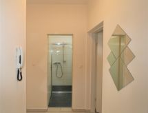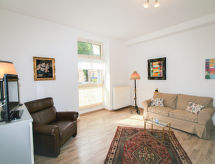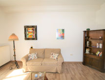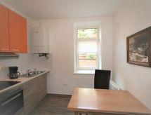 "Theresa", 2 -sobni apartman 65 m2, u prizemlju. Svijetlo, udobno uređen: veliki dnevni boravak s TV-om. 1 soba s 1 rasklopnim franc. ormar-krevetom za 2 osobe (140 cm, dužina 200 cm). Kuhinja (4 staklokeramičke ploče za kuhanje, Plinski štednjak, mikrovalna pećnica, zamrzivač, el. aparat za kavu) s stolom za blagovanje. Tuš/WC. Parketni pod. Na raspolaganju: visoka dječja stolica. Internet (wireless LAN [WLAN], besplatan). Dodatna informacija: apartman za nepušače.- postrojenja