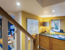 2 -sobna obiteljska kuća na 2 etaže. Prostrano i svijetlo, komforno i ukusno uređena: otvoreni dnevni boravak s TV-om, plosnatim TV ekranom i DVD-om. Otvorena kuhinja (4 ploče za kuhanje, pećnica, mikrovalna pećnica, zamrzivač) s stolom za blagovanje. Grijanje. Gornji kat: 1 bračna soba s 1 bračnim krevetom. 1 soba s 1 x 2 kreveta na kat. Kada/tuš/WC. Grijanje. Lijep pogled na more i more. Na raspolaganju: perilica za rublje, sušilica. Internet (wireless LAN [WLAN], besplatan). Dodatna informacija: kuća za nepušače. 1 kućni ljubimac / pas dozvoljen.- Značajke smještaja
