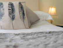 5 -sobna kuća na 2 etaže. Svijetlo, jednostavno i komforno uređena: 2 sobe, svaka soba s 2 kreveta i umivaonikom. Kuhinja (4 ploče za kuhanje, pećnica, perilica za suđe, mikrovalna pećnica, zamrzivač) s stolom za blagovanje i TV-om (plosnatim TV ekranom). Tuš/WC. Grijanje. Gornji kat: 2 bračne sobe, svaka soba s 1 bračnim krevetom. Dnevni boravak s TV-om (plosnatim TV ekranom), DVD-om i peći na drva. Kada/tuš/WC. Grijanje. Vrt. Garnitura za sjedenje. Na raspolaganju: perilica za rublje, sušilica. Internet (wireless LAN [WLAN], besplatan). Dodatna informacija: kuća za nepušače. 1 kućni ljubimac / pas dozvoljen.- postrojenja