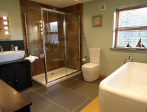 6 -sobna kuća na 2 etaže. Svijetlo, komforno i ukusno uređena: dnevni boravak/blagovaona s TV-om (plosnatim TV ekranom), DVD-om i peći na drva. 1 bračna soba s 1 bračnim krevetom i tušem/WC-om. Izlaz u vrt. 1 bračna soba s 1 bračnim krevetom, umivaonikom i odv. WC-om. 1 soba s 1 krevetom i 2 x 2 kreveta na kat. Otvorena kuhinja (4 ploče za kuhanje, pećnica, perilica za suđe, mikrovalna pećnica, zamrzivač). Kada/tuš/WC. Gornji kat: soba za igru s kosim stropom s TV-om (plosnatim TV ekranom), DVD-om i peći na drva. 1 soba s kosim stropom s 1 bračnim krevetom. Solarno grijanje, podno grijanje. Vrtna terasa, vrt. Garnitura za sjedenje, vrtni roštilj. Na raspolaganju: perilica za rublje, sušilica, sušilo za kosu. Internet (wireless LAN [WLAN], besplatan). Parking. Dodatna informacija: kuća za nepušače. 1 kućni ljubimac / pas dozvoljen.- postrojenja