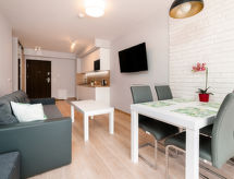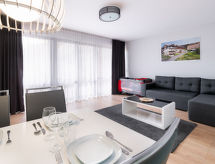 "Sun & Snow apartament dla 4 osób", 2 -sobni apartman 35 do 46 m2. Dnevno-spavaća soba s 1 kaučem za 1 osobu i TV-om sa sat. prijemnikom. Izlaz na balkon. 1 soba s 1 bračnim krevetom. Otvorena kuhinja (perilica za suđe, 1 Indukcione ploče, kuhalo za vodu, el. aparat za kavu) s kutom za blagovanje. Tuš/WC. Grijanje, grijanje na plin. Na raspolaganju: sušilo za kosu. Internet (wireless LAN [WLAN]).- postrojenja