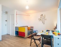 Residence "Trouz Ar Mor". Izvan mjesta, 1.6 km od centra mjesta, 50 m od mora, 50 m od plaže. Parking. Trgovina, trgovina živežnim namirnicama, restoran, bar 700 m, pekara 1 km, cafe 1 km, pješčana plaža "Grande Plage de Quiberon" 1 km. Golf teren (9 rupa), škola jedrenja 3 km, tenis 1.5 km, tenis hala 2 km, jahanje konja 4 km. U blizini: Carnac 18 km, Auray 28 km, Vannes 46 km, Côte sauvage 10 m, Belle ile en mer.Interior