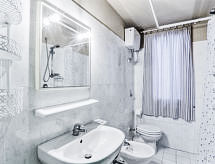 "Tulipano", 3 -sobni apartman 65 m2, u prizemlju. Dnevni boravak/blagovaona s 1 kaučem za 1 osobu (120 cm, dužina 190 cm), TV-om sa sat. prijemnikom i plosnatim TV ekranom. Izlaz na lođu. 1 bračna soba. Kuhinjska niša (4 ploče za kuhanje, perilica za suđe). Tuš/bidet/WC. Donji kat: 1 soba, bez prozora s 2 kreveta i tušem/bidetom/WC-om. Klima uređaj (uz doplatu). Vrt 15 m2. Garnitura za sjedenje. 1 kućni ljubimac / pas dozvoljen.- Značajke smještaja