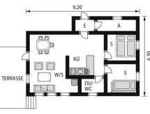 "Turken (FJS767)", 3 -sobna kuća 50 m2. Udobno i s puno drva uređena: dnevno-spavaća soba s 1 kaučem za 1 osobu, švedskom peći, stolom za blagovanje, TV-om sa sat. prijemnikom i međunarodnim TV kanalima. Izlaz na terasu. 1 soba s 1 bračnim krevetom (150 cm, dužina 200 cm). 1 soba s 1 x 2 kreveta na kat (90 cm, dužina 200 cm). Otvorena kuhinja (4 ploče za kuhanje, pećnica, kuhalo za vodu, zamrzivač, el. aparat za kavu). Tuš/WC. El. grijanje. Na raspolaganju: visoka dječja stolica, dječji krevetić. Internet (wireless LAN [WLAN], besplatan). Dodatna informacija: najviše 1 kućni ljubimac / pas dozvoljen. Protupožarni alarm, vatrogasni aparat.- postrojenja