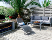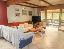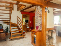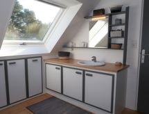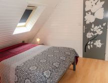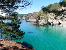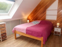 "Ty Basguen (CZN149)", 6 -sobna kuća 160 m2 na 2 etaže. Lijepo i s puno drva uređena: dnevni boravak/blagovaona s otvorenim kaminom, stolom za blagovanje, TV-om, muzičkom linijom i DVD-om. Izlaz na verandu. Dnevni boravak/blagovaona s kuhinjskim blokom. Kuhinja (pećnica, perilica za suđe, 4 plamena za kuhanje, toster, kuhalo za vodu, mikrovalna pećnica, zamrzivač, el. aparat za kavu). Kada, tuš, tuš/WC, 2 x odv. WC. Gornji kat: 3 sobe s kosim stropom s krovnim prozorom, svaka soba s 1 franc. krevetom (140 cm, dužina 190 cm). 1 soba s kosim stropom s 1 franc. krevetom (140 cm, dužina 190 cm), el. peći. Parketni pod. 2 terase. Garnitura za sjedenje, vrtni roštilj, ležaljke (2). Na raspolaganju: perilica za rublje, glačalo, visoka dječja stolica, dječji krevetić do 2 godine, sušilo za kosu. Internet (wireless LAN [WLAN], besplatan). Dodatna informacija: kuća za nepušače. Najviše 1 kućni ljubimac / pas dozvoljen. Protupožarni alarm. U slučaju boravka manjeg broja gostiju od maksimalnog kapaciteta objekta, pomoćni objekt neće biti na raspolaganju.- Značajke smještaja