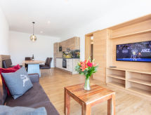 Moderni, komforni stambeni objekt "Unterkeilgut", na 3 kata, godina izgradnje 2018, okružen livadama. Iznad mjesta Zell am See 1.5 km od centra mjesta Schüttdorf, 3.5 km od centra mjesta Zell am See, mirno, sunčano mjesto, 2 km od jezera, 600 m od skijališta. Za zajedničko korištenje: prirodno ostavljena parcela. Dječje igralište. Mali zoološki vrt. U kući: recepcija, centralno grijanje, grijač za skijašku obuću. Dostava kruha. Prilaz autom do kuće. Parking (natkriti, ograničen broj mjesta) uz kuću. Trgovina 1.5 km, supermarket 2 km, restoran 1.5 km, natkriveni bazen 3.5 km, termalno kupalište "Tauern Spa" 8 km, jezero za kupanje "Zeller See" 2 km. Golf teren (18 rupa) 6 km, pješačke staze od kuće 10 m, gondola 1.5 km. Poznata skijališta u blizini: Schmitten Höhe, Kitzstein Horn, Maiskogl. Pješačke staze: Hohe Tauern Schmitten Höhe. Dodatna informacija: preporučljiv vlastiti prijevoz. Prodaja domaćih poljoprivrednih proizvoda. U slučaju povoljnih snježnih uvjeta pristup do kuće na skijama. U istoj kući iznajmljuju se dodatni apartmani.Interior