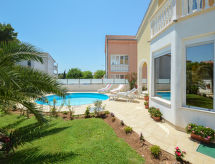 6 -sobna polovica dvojne kuće 170 m2 na 2 etaže. Komforno i moderno uređena: dnevni boravak/blagovaona 50 m2 s TV-om sa sat. prijemnikom (plosnatim TV ekranom), DVD-om i klima uređajem. Izlaz na terasu. 1 soba s 1 franc. krevetom (180 cm, dužina 200 cm). 1 soba s 1 franc. krevetom (180 cm, dužina 200 cm). Izlaz na terasu. 1 soba s 2 kreveta (90 cm, dužina 200 cm). Izlaz na terasu. Otvorena kuhinja (pećnica, perilica za suđe, 4 staklokeramičke ploče za kuhanje, mikrovalna pećnica, zamrzivač, el. aparat za kavu). Tuš/WC. Gornji kat: 1 soba 10 m2 s 1 franc. krevetom (160 cm, dužina 200 cm), tušem/WC-om i TV-om sa sat. prijemnikom (plosnatim TV ekranom), klima uređajem. Izlaz na terasu. 1 soba s 1 franc. krevetom (160 cm, dužina 200 cm). Kuhinja (2 staklokeramičke ploče za kuhanje) s stolom za blagovanje. Tuš/WC. Terasa 20 m2 (djelomično natkrita), 3 terase 4 m2. Garnitura za sjedenje. Pogled na bazen. Na raspolaganju: dječji krevetić. Internet (wireless LAN [WLAN], besplatan).- postrojenja