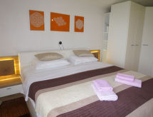 "Valek (SRD325)", 5 -sobna kuća 170 m2 na 2 etaže. Dnevni boravak/blagovaona s TV-om sa sat. prijemnikom (plosnatim TV ekranom), DVD-om i klima uređajem. Otvorena kuhinja (4 ploče za kuhanje, pećnica, perilica za suđe, toster, kuhalo za vodu, zamrzivač, el. aparat za kavu). Tuš/WC. Gornji kat: 1 soba s 1 franc. krevetom (150 cm, dužina 200 cm), klima uređajem. Izlaz na terasu. 3 sobe, svaka soba s 1 bračnim krevetom (2 x 90 cm, dužina 200 cm), klima uređajem. Izlaz na terasu. Kada/WC. Terasa. Garnitura za sjedenje. Pogled na more. Na raspolaganju: glačalo. Internet (wireless LAN [WLAN], besplatan). Dodatna informacija: kuća za nepušače.- Značajke smještaja