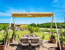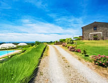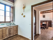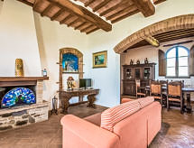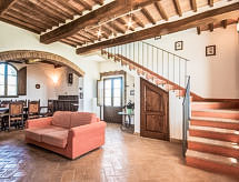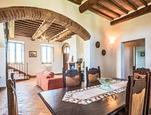 Podere S.Giuseppe, 1 km od mjesta Castelnuovo Berardenga: Vrlo stara, lijepa, komforna seoska kuća "San Giuseppe", renovirana godine 2004. 15 km od centra mjesta Terme di Rapolano, 20 km od centra mjesta Siena, 23 km od centra mjesta Asciano, na brežuljku, u zelenom. Za zajedničko korištenje: prirodni vrt, bazen (5 x 12 m, 120- 240 cm dubok, sezonska dostupnost: 15.May. - 30.Sep.) s unutarnjim stepenicama. Vanjski tuš, terasa, roštilj. Za samostalno korištenje: vrtna garnitura za sjedenje. U kući: centralno grijanje, grijanje na raspolaganju samo od 01.11. do 15.04.. Prilaz autom do kuće (300 m bijela cesta). Parking uz kuću. Trgovina živežnim namirnicama 1 km, restoran 1 km. Jahanje konja 8 km. Dodatna informacija: vlasnik živi na istoj parceli.Interior