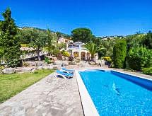 Vizcondado de Cabanyes 3 km od mjesta Calonge: Lijepa, komforna vila "Venecia", na 2 kata. 5 km od mora. Za samostalno korištenje: prirodni vrt 1'000 m2, prekrasan vrt za opuštanje, bazen pravokutni (10 x 5 m, sezonska dostupnost: 01.May. - 30.Oct.). Vanjski tuš, sjenica, pergola, terasa, vrtna garnitura za sjedenje, roštilj. Parking uz kuću. Supermarket 1.8 km, restoran 700 m, pješčana plaža "Sant Antoni de Calonge" 5 km. Sportska lučica 8 km, golf teren 6 km, tenis 2 km, jahanje konja 12 km. Dodatna informacija: preporučljiv vlastiti prijevoz.Interior