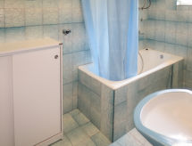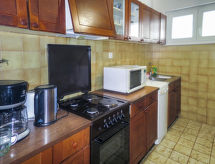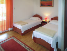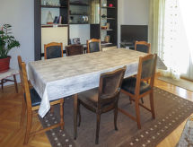5 -sobni apartman 115 m2 na 1. katu. Dnevni boravak/blagovaona s TV-om sa sat. prijemnikom (plosnatim TV ekranom). Izlaz na terasu. 1 soba s 1 kaučem za 1 osobu i 1 franc. krevetom (160 cm, dužina 200 cm). 2 sobe, svaka soba s 2 kreveta. 1 soba s 2 kreveta, kuhinjskim blokom i tušem/WC-om. Izlaz na balkon. Kuhinja (2 ploče za kuhanje, pećnica, perilica za suđe, 2 plamena za kuhanje, toster, kuhalo za vodu, mikrovalna pećnica, zamrzivač, el. aparat za kavu). Kada/WC, odv. WC. Balkon, terasa. Garnitura za sjedenje, vrtni roštilj. Na raspolaganju: Internet (wireless LAN [WLAN], besplatan). Dodatna informacija: apartman za nepušače. Pristup sobi s 2 kreveta, kuhinjskim blokom i tušem/WC-om putem zajedničkog hodnika.- Značajke smještaja