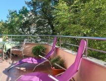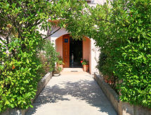 "Vera (MLK326)", 2 -sobni apartman 40 m2, u prizemlju. Dnevno-spavaća soba s TV-om sa sat. prijemnikom. Izlaz na terasu. 1 soba s 1 bračnim krevetom (2 x 90 cm, dužina 190 cm). Blagovaona. Otvorena kuhinja (1 ploča za kuhanje, pećnica, 3 plamena za kuhanje, toster, kuhalo za vodu, mikrovalna pećnica, zamrzivač, el. aparat za kavu). Tuš/WC. Terasa. Garnitura za sjedenje, ležaljke (2). Na raspolaganju: sušilo za kosu. Internet (wireless LAN [WLAN], besplatan). Dodatna informacija: kuća za nepušače.- postrojenja