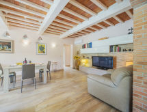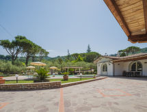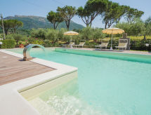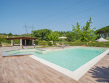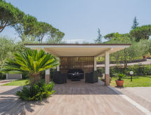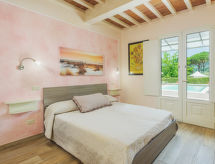 "Versilia Holiday", 4 -sobna kuća 120 m2, u prizemlju. Lijepo i udobno uređena: otvoreni veliki dnevni boravak. Izlaz na terasu. 1 bračna soba. Izlaz na bazen. 2 bračne sobe. Kuhinja (pećnica, perilica za suđe, 4 plamena za kuhanje, toster, kuhalo za vodu, mikrovalna pećnica, el. aparat za kavu) s TV-om sa sat. prijemnikom i plosnatim TV ekranom. Izlaz u vrt. 2 x tuš/bidet/WC. Grijanje na plin (uz doplatu), klima uređaj (uz doplatu). Terasa 20 m2 (natkrita). Garnitura za sjedenje, vrtni roštilj. Na raspolaganju: perilica za rublje, glačalo, visoka dječja stolica, dječji krevetić do 2 godine, sušilo za kosu. Internet (wireless LAN [WLAN]). Parking (natkrit, ograđen, 2 automobila). 2 kućna ljubimca / psa dozvoljena.- postrojenja