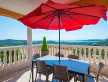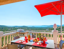 "Via Mare (PVC512)", 4 -sobni apartman 100 m2. Lijepo i moderno uređen: dnevno-spavaća soba s 1 kaučem za 2 osobe (160 cm), stolom za blagovanje i TV-om sa sat. prijemnikom. Izlaz na terasu. 2 sobe, svaka soba s 1 franc. krevetom (160 cm). 1 soba s 2 kreveta (80 cm). Kuhinjska niša (pećnica, perilica za suđe, 4 staklokeramičke ploče za kuhanje, toster, mikrovalna pećnica, el. aparat za kavu). 2 x tuš/WC. Klima uređaj. Terasa. Garnitura za sjedenje, vrtni roštilj. Lijep panoramski pogled na more, zaljev i Ile San Ciprianu. Na raspolaganju: sef. Dodatna informacija: prikladno za obitelji. Apartman za nepušače. Protupožarni alarm. Raspored kreveta je fleksibilan. Dostupno je više mogućnosti za spavanje od maksimalno dopuštenog broja osoba koji se ipak ne smije prekoračiti- Značajke smještaja