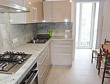 3 -sobni apartman 80 m2 na 7. katu. Prostrano, komforno uređen: dnevni boravak/blagovaona s panoramskim prozorom s TV-om, plosnatim TV ekranom i klima uređajem. Izlaz na balkon, na verandu. 1 soba s 2 kreveta (90 cm, dužina 190 cm). 1 soba s 1 franc. krevetom (140 cm, dužina 190 cm). Kuhinja (3 ploče za kuhanje, pećnica, perilica za suđe, mikrovalna pećnica, zamrzivač, el. aparat za kavu) s malim stolom za blagovanje. Tuš, odv. WC, duplim umivaonikom. Veliki balkon. Balkonski namještaj, mjesto za sjedenje. Lijep pogled na krajolik i mjesto. Na raspolaganju: perilica za rublje, glačalo, sušilo za kosu. Internet (wireless LAN [WLAN], besplatan). Garaža br. 30. Dodatna informacija: apartman za nepušače. Protupožarni alarm. 64122172074QN- Značajke smještaja