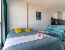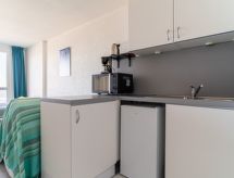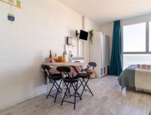 Residence "Victoria Surf". U centru mjesta Biarritz, centralno, prometno mjesto, 50 m od mora, 50 m od plaže, prijeći cestu. Za zajedničko korištenje: bazen (15 x 17 m, 150- 400 cm dubok, sezonska dostupnost: 01.Jun. - 30.Sep. bazen je otvoren u vremenu: 09:00-20:00). Bazen za djecu. U kompleksu: solarij, dizalo, centralno grijanje. Trgovina 20 m, restoran 100 m, autobusna postaja 50 m, željeznička postaja "Gare de Biarritz" 3.4 km, pješčana plaža "La Grande Plage" 50 m. Golf teren (18 rupa) 1.9 km, škola jedrenja na dasci 50 m. U blizini: Casino 150 m, Marché des Halles 800 m, Aquarium 1 km, Phare de Biarritz 1 km, Bayonne 7.5 km, St-Jean-de-Luz 15 km. Pješačke staze: La Rhune 26 km. Ključeve ćete preuzeti u turističkoj agenciji Interhome.Interior