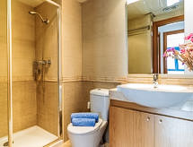 3 -sobni apartman 62 m2 na 1. katu. Svijetlo, komforno i moderno uređen: dnevni boravak/blagovaona s 1 kaučem za 1 osobu, stolom za blagovanje, TV-om sa sat. prijemnikom, digitalnim TV i klima uređajem. Izlaz na balkon. 1 soba s 1 franc. krevetom. 1 soba s 1 krevetom na izvlačenje (2 osobe). Otvorena kuhinja (pećnica, perilica za suđe, 3 staklokeramičke ploče za kuhanje, mikrovalna pećnica, zamrzivač, el. aparat za kavu). Tuš/WC. Bez grijanja. Lijep pogled na planine i bazen. Na raspolaganju: perilica za rublje, visoka dječja stolica. Internet (wireless LAN [WLAN]). Parking br. 1 (natkrit). Dodatna informacija: TV samo ES, FR. HUTG043558- postrojenja