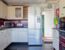 4 -sobna kuća na 2 etaže. Prostrano i svijetlo, komforno i udobno uređena: dnevni boravak s digitalnim TV i peći na drva. 1 bračna soba s 1 bračnim krevetom, umivaonikom, tušem/WC-om i TV-om (plosnatim TV ekranom). Kuhinja (4 ploče za kuhanje, pećnica, perilica za suđe, mikrovalna pećnica, zamrzivač) s stolom za blagovanje. Tuš/WC. Gornji kat: 1 soba s 1 bračnim krevetom, umivaonikom, tušem/WC-om i TV-om (plosnatim TV ekranom). 1 soba s 2 kreveta, umivaonikom, tušem/WC-om i TV-om (plosnatim TV ekranom). Vrtna terasa, vrt. Garnitura za sjedenje, vrtni roštilj. Vrlo lijep panoramski pogled na more. Na raspolaganju: perilica za rublje, sušilica, visoka dječja stolica, dječji krevetić do 2 godine. Internet (wireless LAN [WLAN], besplatan). Dodatna informacija: kuća za nepušače. TV samo EN.- postrojenja