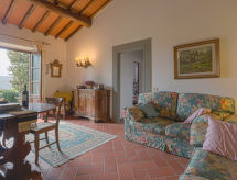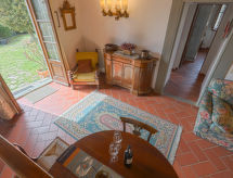 Lijep na vinogradarskom imanju obiteljska kuća "Tenuzta di Vignole", nadograđen s jedne strane, renoviran, okružen poljima i vinogradima. 3 km od centra mjesta Panzano, 7 km od centra mjesta Greve in Chianti, 35 km od centra mjesta Firenze, izolirano, povišeno mjesto na brežuljku, u zelenom. Za zajedničko korištenje: parcela 210'000 m2, vrt (ograđen) - bilje i drveće. 2.4 km dugački neravan prilaz autom (bijela cesta). Parking na parceli. Trgovina 3 km, trgovina živežnim namirnicama 3 km, restoran 3 km, pekara 3 km, autobusna postaja "Panzano" 3 km, vanjski bazen 6 km. Golf teren (18 rupa) 22 km. U blizini: Radda in Chianti 15 km, San Gimignano 40 km, Siena 40 km. Dodatna informacija: preporučljiv vlastiti prijevoz. Oprema za bebe (uklj.). Prodaja domaćih poljoprivrednih proizvoda. Vlasnik živi na istoj parceli.Interior