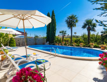 "Viktorija (PRC406)", 2 -sobni apartman 48 m2 na 1. katu. Dnevni boravak/blagovaona s 1 kaučem za 2 osobe (180 cm, dužina 200 cm), TV-om sa sat. prijemnikom i klima uređajem. Izlaz na terasu. 1 soba s 1 bračnim krevetom. Izlaz na terasu. Otvorena kuhinja (4 staklokeramičke ploče za kuhanje, toster, kuhalo za vodu, mikrovalna pećnica, el. aparat za kavu). Kada/WC. Grijanje na naftu. Terasa 20 m2. Garnitura za sjedenje. Na raspolaganju: Internet (wireless LAN [WLAN], besplatan). Dodatna informacija: kuća za nepušače. Najviše 1 kućni ljubimac / pas dozvoljen.- postrojenja