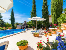 Kuća s 3 apartmana "Viktorija". 400 m od centra mjesta Nova Vas, 5 km od centra mjesta Poreč, 5 km od mora. Za zajedničko korištenje: parcela 1'200 m2 (ograđena) - bilje i drveće, bazen (11 x 5 m, 150 cm dubok, sezonska dostupnost: 01.May. - 01.Oct.). Nepravilan oblik bazena. Vanjski tuš, vrtna garnitura za sjedenje, roštilj. U kući: pristup internetu, perilica za rublje (za zajedničko korištenje). Parking na parceli. Trgovina 400 m, supermarket 5 km, stjenovita plaža 5 km. Marina 5 km. Dodatna informacija: vlasnik živi u istoj kući.Interior