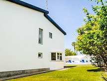 "Vila Violeta", 6 -sobna vila 200 m2. Komforno i udobno uređena: dnevni boravak/blagovaona s otvorenim kaminom i kabelskom TV (plosnatim TV ekranom). Izlaz na mjesto za sjedenje u vrtu, na bazen. 1 soba s 1 franc. krevetom i tušem/WC-om. Kuhinja (pećnica, perilica za suđe, 4 staklokeramičke ploče za kuhanje, mikrovalna pećnica, el. aparat za kavu) s stolom za blagovanje. Odv. WC. Gornji kat: 1 soba s 1 franc. krevetom i hidromasažna kada. 2 sobe, svaka soba s 1 franc. krevetom i tušem/WC-om. 1 soba s 1 krevetom i 1 x 2 kreveta na kat. Terasa. Garnitura za sjedenje, vrtni roštilj, ležaljke (6). Pogled na bazen. Na raspolaganju: perilica za rublje, dječji krevetić do 3 godine, sušilo za kosu. Internet (wireless LAN [WLAN], besplatan). 56675/AL- postrojenja