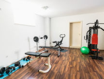 3 -sobni apartman 60 m2 na 1. katu, prema jugu. Dnevni boravak/blagovaona s 1 kaučem za 1 osobu (100 cm, dužina 190 cm), TV-om sa sat. prijemnikom i klima uređajem. Izlaz na terasu. 1 soba s 1 bračnim krevetom (2 x 90 cm, dužina 200 cm). Izlaz na balkon. 1 soba s 1 franc. krevetom (160 cm, dužina 190 cm). Izlaz na balkon. Otvorena kuhinja (pećnica, perilica za suđe, 2 staklokeramičke ploče za kuhanje, zamrzivač). Kada/bidet/WC. Balkon 7 m2, terasa 36 m2 (djelomično natkrita). Garnitura za sjedenje. Na raspolaganju: Internet (wireless LAN [WLAN], besplatan). Uslijed situacije s korona virusom (covid-19), u ovom objektu se provode mjere u svrhu zaštite gostiju i osoblja. Uslijed toga korištenje određenog sadržaja ili pružanje usluga može biti ograničeno ili onemogućeno.- postrojenja