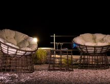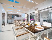 "Villa Afandou II", 5 -sobna vila 250 m2 na 2 etaže. Prostrano i svijetlo, komforno i moderno uređena: otvoreni dnevni boravak s otvorenim kaminom i TV-om sa sat. prijemnikom (plosnatim TV ekranom), DVD-om. Izlaz na terasu, na bazen. 1 soba s 1 bračnim krevetom. Otvorena kuhinja (pećnica, perilica za suđe, 4 staklokeramičke ploče za kuhanje, mikrovalna pećnica, el. aparat za kavu) s stolom za blagovanje. Tuš/WC. Klima uređaj. Gornji kat: 2 sobe, svaka soba s 1 bračnim krevetom i tušem/WC-om. Izlaz na balkon. 1 bračna soba s 2 kreveta. Izlaz na terasu. Klima uređaj. 2 balkona, velika terasa, mala terasa. Vrtni roštilj, ležaljke, mjesto za sjedenje. Pogled na more i krajolik. Na raspolaganju: perilica za rublje, sef, glačalo, sušilo za kosu. Internet (wireless LAN [WLAN], besplatan). Dodatna informacija: prikladno za obitelji. Kuća za nepušače. 10000496001- postrojenja