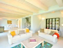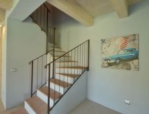 "Villa Azzurro", 3 -sobna kuća 100 m2 na 2 etaže. Prostrano i svijetlo, vrlo lijepo i stilski uređena: veliki dnevni boravak/blagovaona s stolom za blagovanje, TV-om sa sat. prijemnikom i međunarodnim TV kanalima (plosnatim TV ekranom), DVD-om. Izlaz u vrt, na terasu. Otvorena kuhinja (pećnica, perilica za suđe, 4 plamena za kuhanje, toster, kuhalo za vodu, mikrovalna pećnica, el. aparat za kavu). Izlaz u vrt, na terasu. Gornji kat: 1 bračna soba s kadom/bidetom/WC-om. 1 soba s 2 kreveta. Tuš/bidet/WC. Klima uređaj, podno grijanje. Prirodni kameni pod. Komforno uređeno u ladanjskom stilu. Terasa, vrtna terasa. Garnitura za sjedenje, ležaljke. Vrlo lijep panoramski pogled na krajolik. Na raspolaganju: perilica za rublje, sušilica, glačalo, mrežice protiv komaraca, visoka dječja stolica, dječji krevetić do 2 godine, sušilo za kosu. Internet (wireless LAN [WLAN], besplatan). Parking (2 automobila) uz kuću. Dodatna informacija: prikladno za obitelji. Apartman za nepušače. 1 kućni ljubimac / pas dozvoljen. Vlastiti ulaz. Na licu mjesta nema naplate dodatnih troškova, osim boravišne pristojbe. Posteljina, ručnici, završno čišćenje i troškovi energije su uključeni u cijenu.- Značajke smještaja