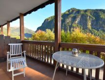 3 -sobni apartman 80 m2 na 2 etaže na 1. katu. Svrsishodno i komforno uređen: dnevni boravak/blagovaona s švedskom peći (samo za dekoraciju), stolom za blagovanje i TV-om (plosnatim TV ekranom). Izlaz na terasu. Otvorena kuhinja (4 ploče za kuhanje, pećnica, perilica za suđe) s stolom za blagovanje i kutom za blagovanje. Tuš/bidet/WC. Gornji kat: (kružne stepenice) 1 bračna soba. Izlaz na terasu. 1 soba s 2 x 2 kreveta na kat. Tuš/bidet/WC. Parketni pod. 2 terase. Garnitura za sjedenje. Panoramski pogled na planine i dolinu. Na raspolaganju: perilica za rublje, sušilo za kosu. Internet (wireless LAN [WLAN], besplatan). Parking (2 automobila). Dodatna informacija: prikladno za obitelji. Hladnjak bez zamrzivača apartman za nepušače. 1 kućni ljubimac / pas dozvoljen. Nema dizala. CIPAT 022036-AT-681980- postrojenja