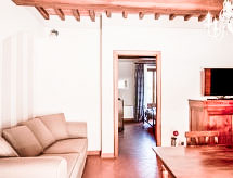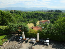 Rezidencija "Villa Belvedere", godina izgradnje 1600, renovirana godine 2013. 9 apartmana u kući. U centru mjesta Incisa in Val d'Arno 27 km od centra mjesta Greve in Chianti, 35 km od centra mjesta Firenze, 70 km od centra mjesta Siena, 60 km od jezera. Za zajedničko korištenje: vrt 5'000 m2 (ograđen), bazen (25 x 12 m, 120- 140 cm dubok, sezonska dostupnost: 23.Apr. - 08.Oct.). Vanjski tuš, vrtna garnitura za sjedenje, roštilj. U kući: recepcija, masaža (uz doplatu). Praona rublja, perilica za rublje, sušilica (za zajedničko korištenje), grijanje na raspolaganju samo od 01.11. do 15.04.. Promjena posteljine (dodatno uz doplatu). Dnevno čišćenje apartmana moguće (uz doplatu). Kuhar moguć (uz doplatu). Doručak na upit (uz doplatu). Parking na parceli. Trgovina 1 km, trgovina živežnim namirnicama 1 km, supermarket 1 km, željeznička postaja 2 km, jezero za kupanje "Lago di Bilancino" 55 km. Golf teren (18 rupa) 22 km, jahanje konja 1.5 km. U blizini: Impruneta 22 km, San Casciano in Val di Pesa 34 km, Radda in Chianti 35 km, Gaiole in Chianti 40 km, Outlet The Mall 7 km. Prikladno za evente. Dodatna informacija: Fotografija prikazuje samo tipičan primjer kuće. Mogućnost rezerviranja dodatnih smještajnih jedinica. Svi apartmani opremljeni sa LED TV 42 " i smart TV.Interior