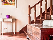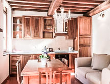3 -sobni apartman 90 m2 na 2 etaže. Renoviran godine 2013, komforno i antikno uređen: dnevni boravak/blagovaona s TV-om sa sat. prijemnikom i klima uređajem. 1 bračna soba s klima uređajem. 1 soba s 2 kreveta i klima uređajem. Kuhinjska niša (pećnica, 4 Indukcione ploče, zamrzivač, el. aparat za kavu, Doze za mašinu za kavu uklj). 2 x tuš/bidet/WC. Na raspolaganju: Internet (wireless LAN [WLAN], besplatan). 2 kućna ljubimca / psa dozvoljena.- postrojenja